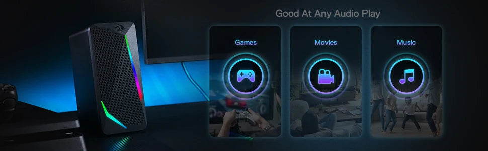 Redragon GS510 Waltz RGB Desktop Speakers, 2.0 Channel PC Computer Stereo Speaker with 4 Colorful LED Backlight Modes, Enhanced